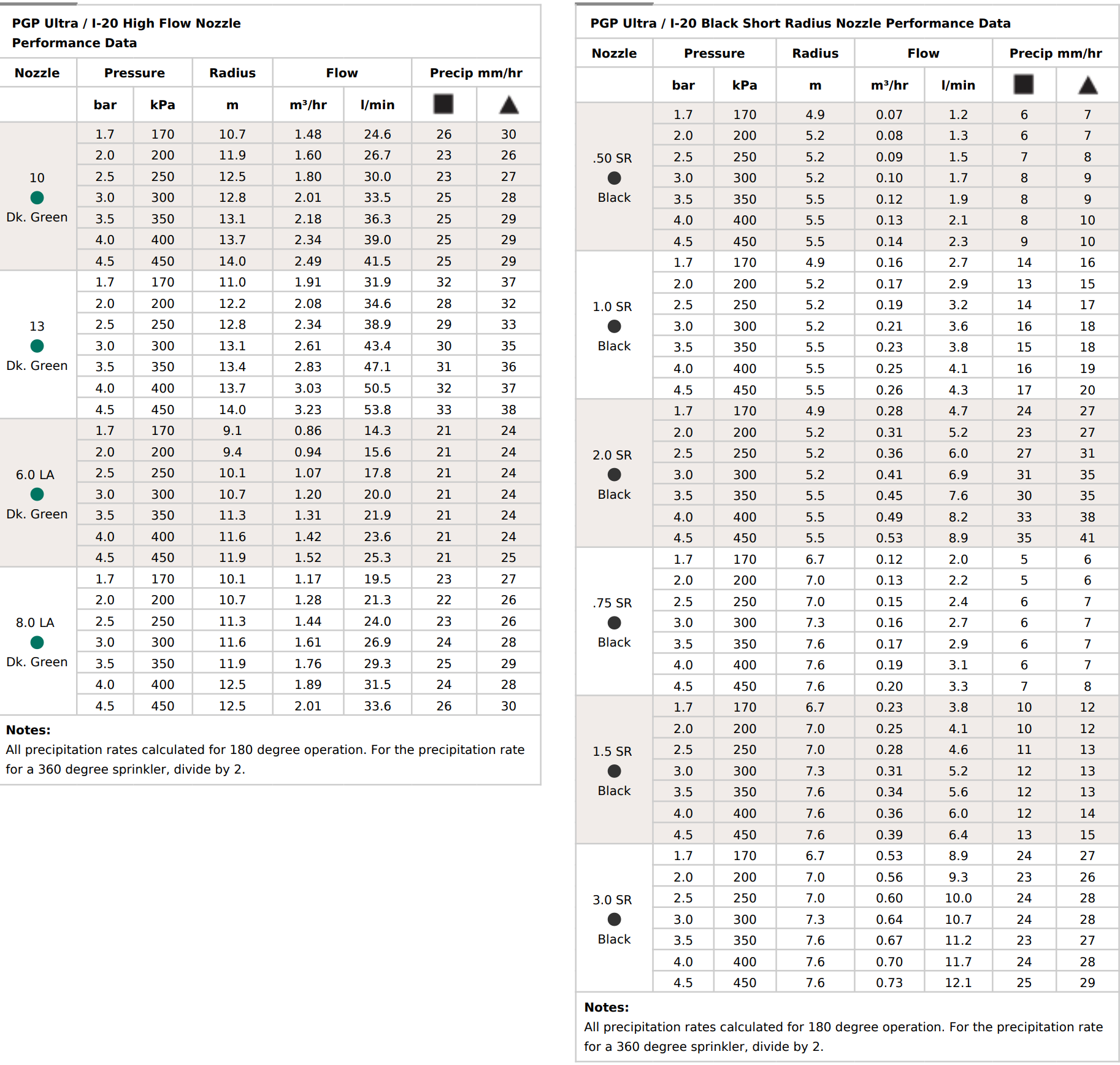- K-Rain: RPS75, K2 Pro and SuperPro® Gear Driven Rotor (similar radius and full-circle performance)
