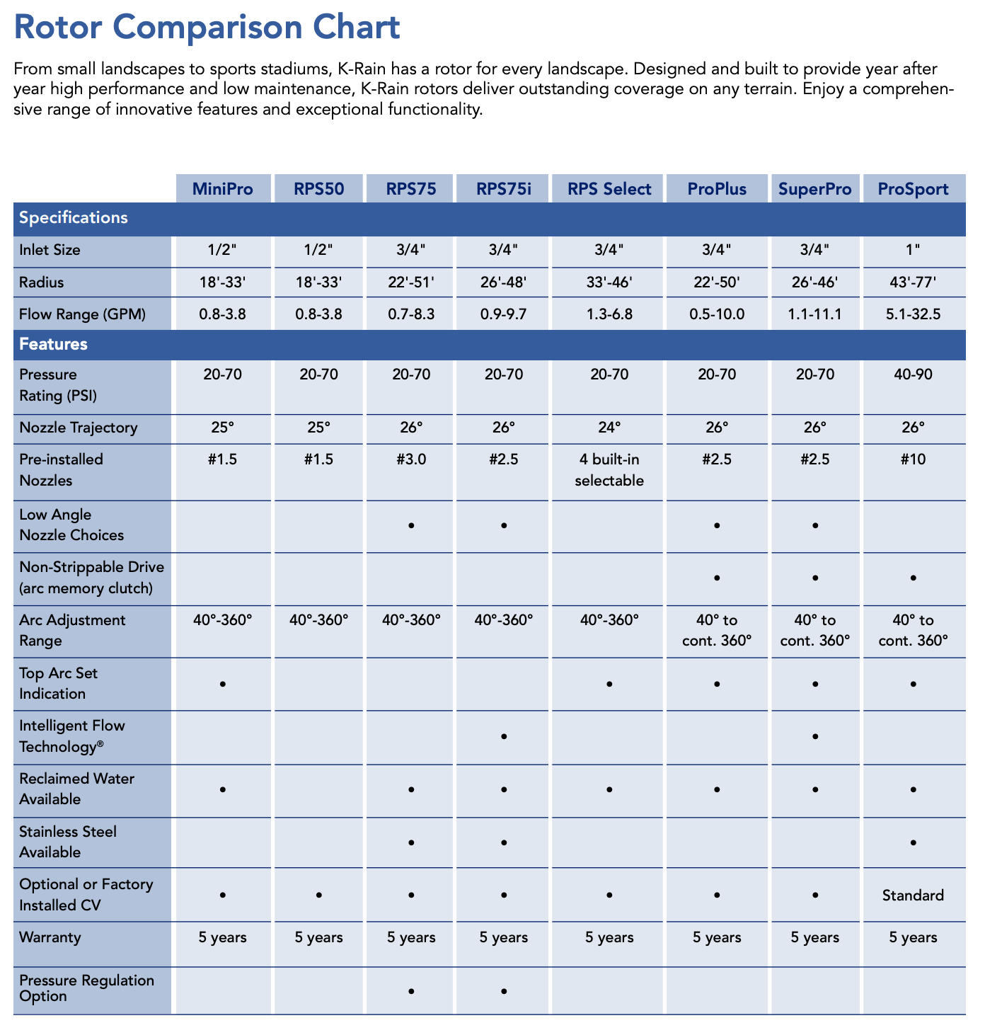 The K-Rain Mini Pro is a revolutionary ½” gear-driven rotary sprinkler that can replace all standard mini rotors and fixed zone pop-up sprayers. As such, it is a direct replacement for PGJ, RB3500, Saturn, and similar models. The MiniPro has a stainless-steel radius adjustment screw and a nozzle trajectory of 25°. Perfect for small to medium-sized lawns, it offers precise irrigation with easy adjustments and durable construction.