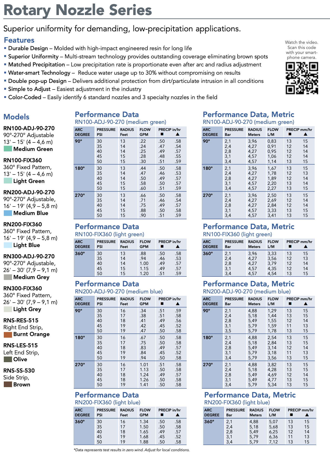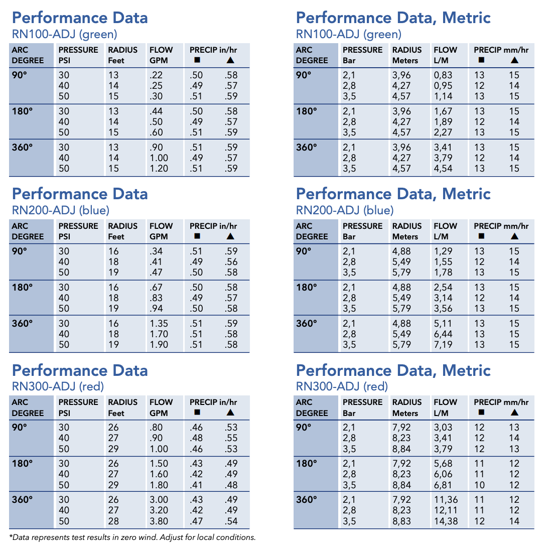 - Matched precipitation – superior efficiency in water and uniformity through all patterns and distances