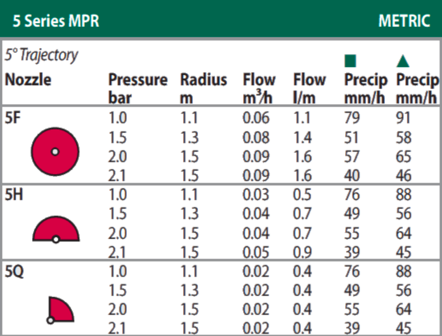- Matched precipitation rates across sets and patterns in 5 Series, 8 Series, 10 Series, and 15 Series for even water distribution and design flexibility