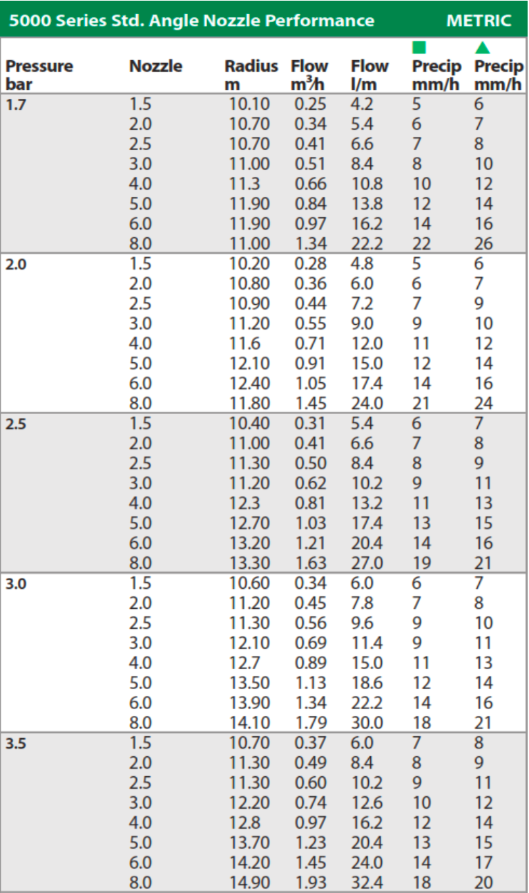 - Standard nozzle trajectory of 25°. Low angle nozzle trajectory of 10°. MPR nozzles varied nozzle trajectory between 12° - 25°.