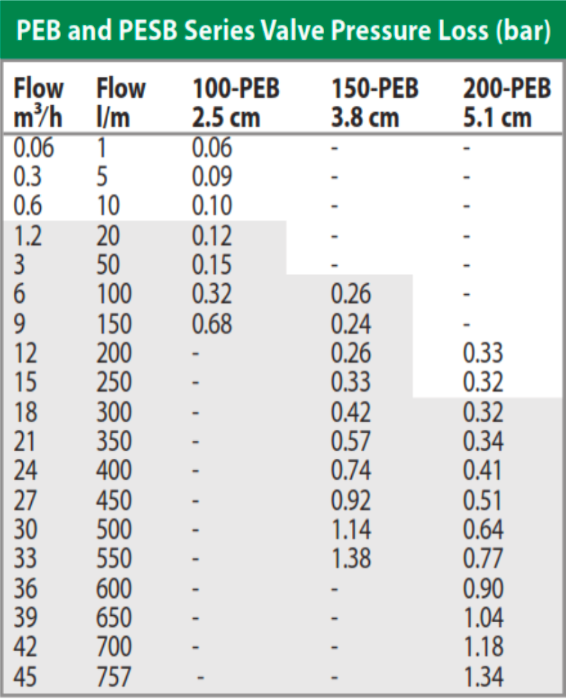 Flow: 0.25 to 300 GPM (0.06 to 68.1 m3/h; 0.02 to 18.90 l/s)