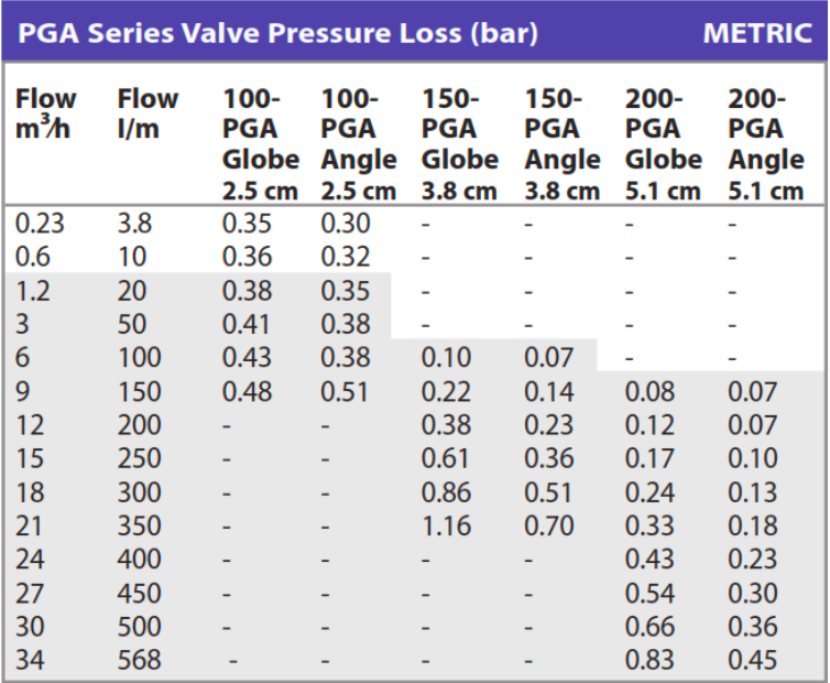 Flow: 2 to 150 GPM (0,5 to 34 m3/h; 0,13 to 9,44 l/s)