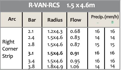 Rain Bird R-VAN-RCS Right Corner Strip Rotary Nozzle 5ft X 15ft (1.5m X 4.6m)