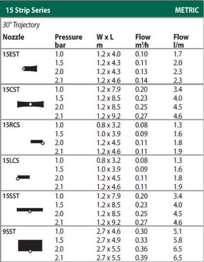 - Matched precipitation rates across sets and across patterns in 5 Series, 8 Series, 10 Series, 12 Series, and 15 Series for even water distribution and design flexibility